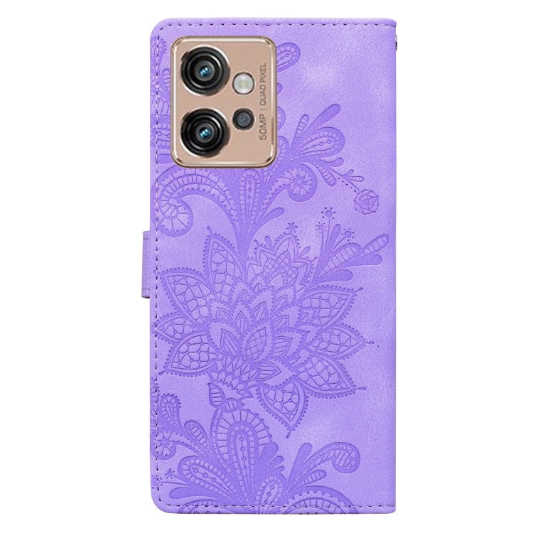 Funda de Cuero con Hebilla Magnética y Diseño Floral en Relieve para Motorola Moto G32 (Morado)