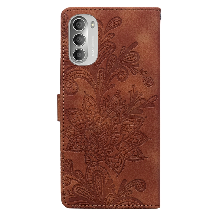 Funda de Cuero con Hebilla Magnética y Diseño Floral para Motorola Moto G51 5G (Marrón)