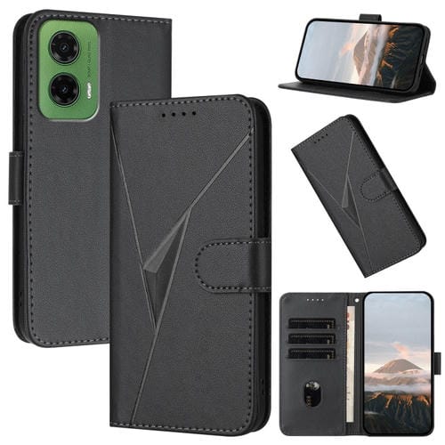 Funda de Cuero con Hebilla y Diseño Triangular para Motorola Moto G35 (Negra)