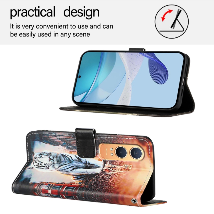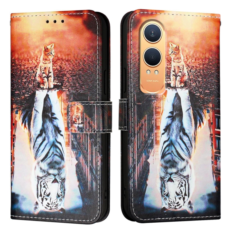 Funda de Cuero para OnePlus Nord CE4 Lite con Patrón de Gatos y Tigres (Colores)