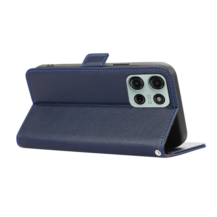 Funda de Cuero Abeel para Motorola Moto G75 5G con Patrón de Lichi y Cierre Magnético (Azul)