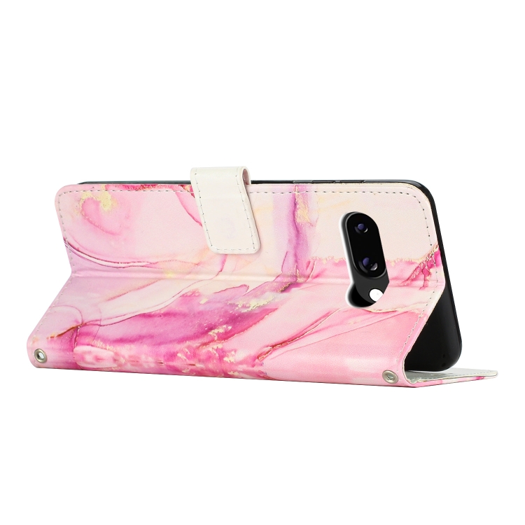Funda de Cuero con Patrón de Mármol para Google Pixel 9A (Oro Rosa)