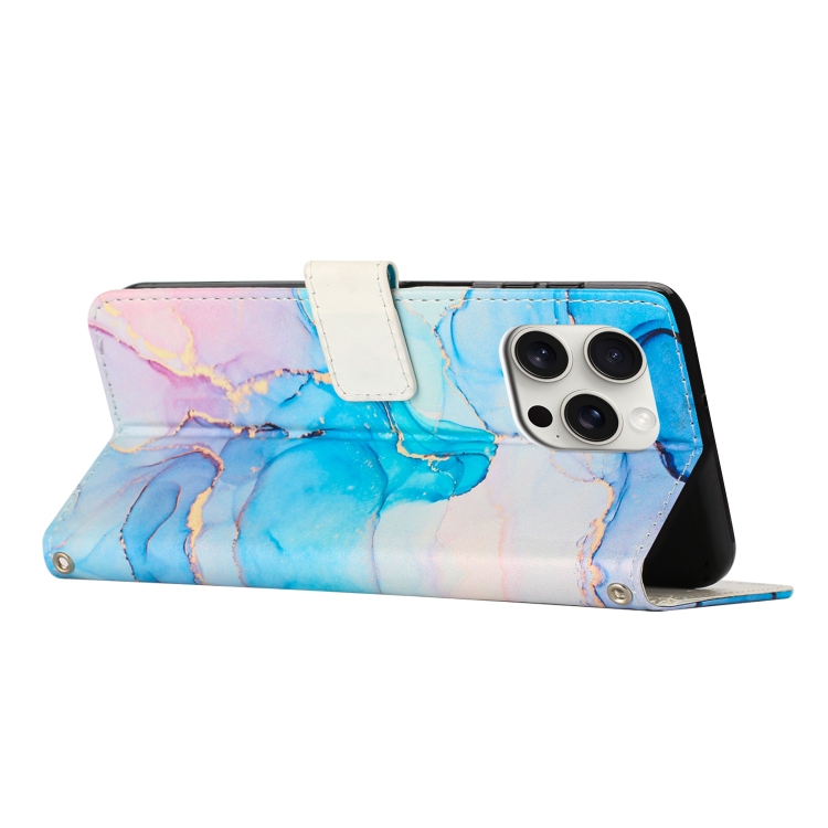 Funda de Cuero para iPhone 16 Pro Max Patrón Mármol Pintado (Rosa y Verde)