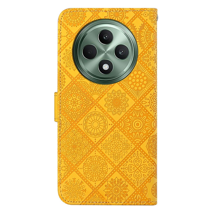 Funda de Cuero con Patrón En Relieve de Estilo Étnico Global para Oppo Reno12 F (Amarillo)