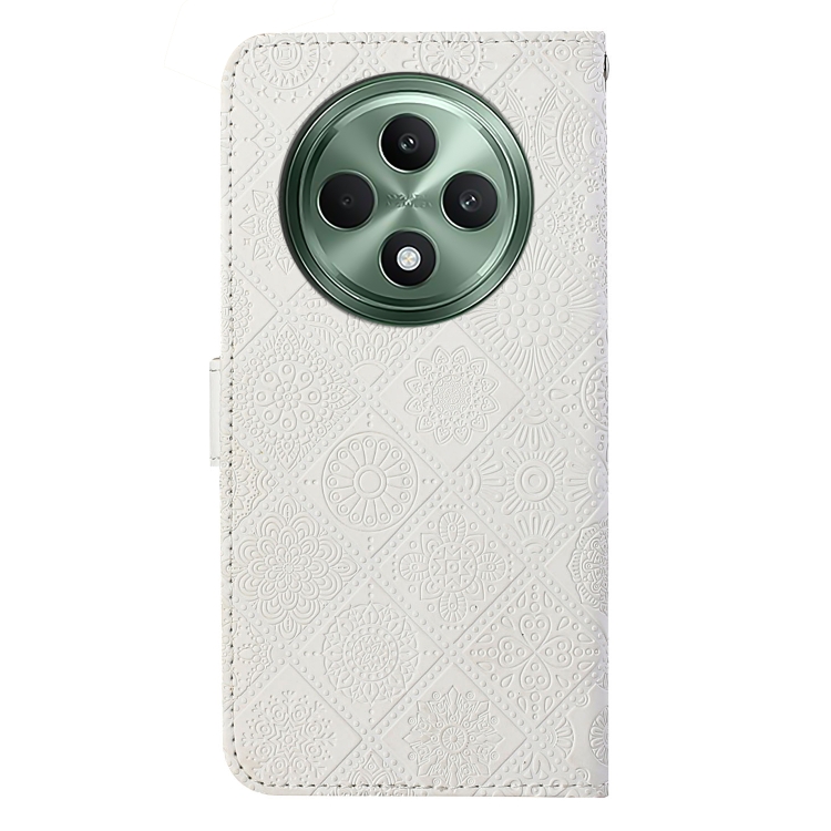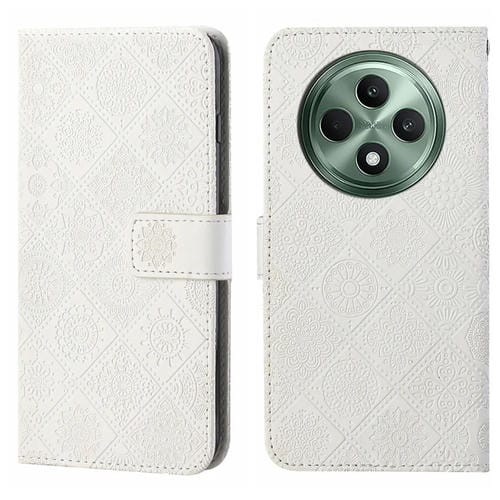 Funda de Cuero con Patrón En Relieve de Estilo Étnico Global para Oppo Reno12 F (Blanco)