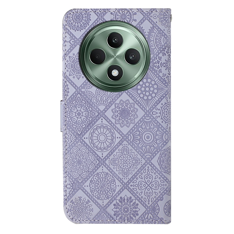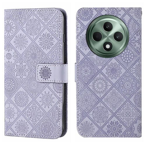 Funda de Cuero con Patrón En Relieve de Estilo Étnico Global para Oppo Reno12 F (Morado)