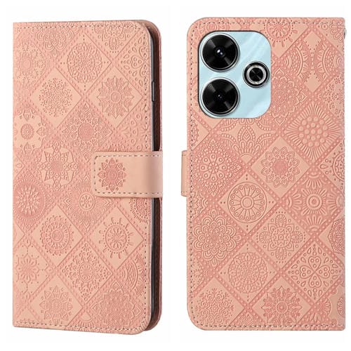 Funda de Cuero con Patrón En Relieve de Estilo Étnico para Redmi 13 4G (Rosa)