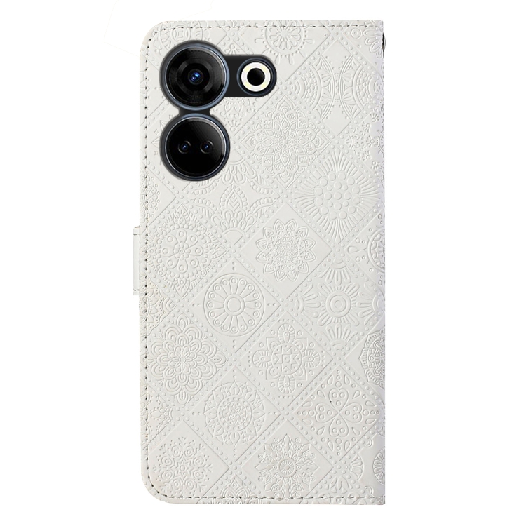 Funda de Cuero con Patrón en Relieve Étnico para Tecno Camon 20 y 20 Pro (Blanca)