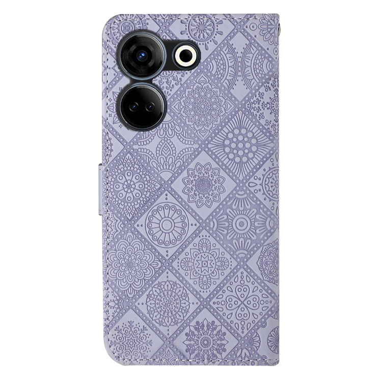 Funda de Cuero con Patrón en Relieve Estilo Étnico para Tecno Camon 20/20 Pro (Morado)