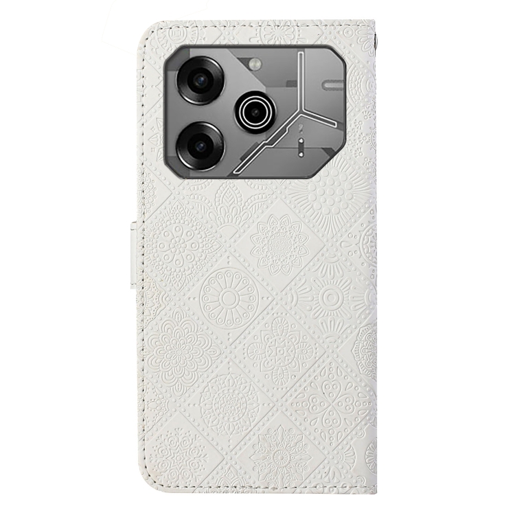 Funda de Cuero con Patrón en Relieve Estilo Étnico para Tecno Pova 6/6 Pro (Blanco)