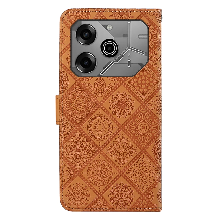 Funda de Cuero para Tecno Pova 6/6 Pro con Patrón En Relieve Estilo Étnico (Marrón)