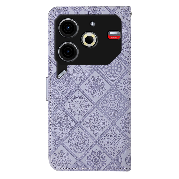 Funda de Cuero para Tecno Pova 6 Neo con Patrón En Relieve Étnico (Morado)