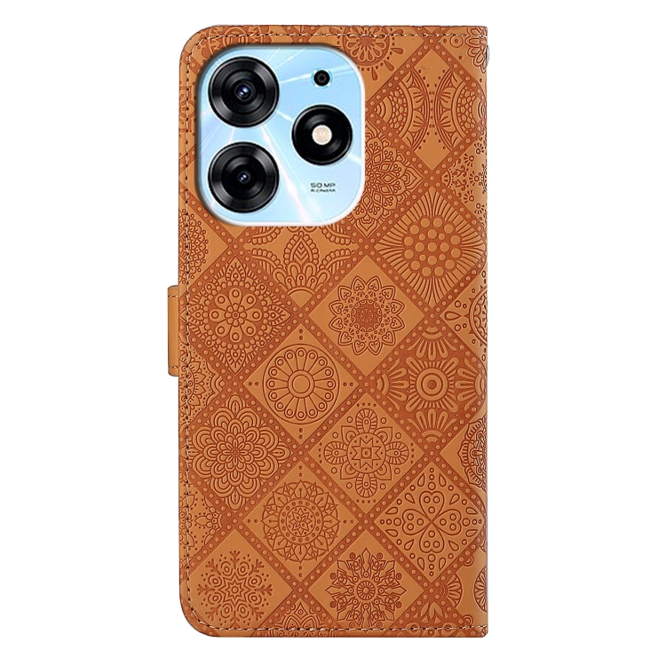 Funda de Cuero para Tecno Spark 10 Pro con Patrón en Relieve Estilo Étnico (Marrón)