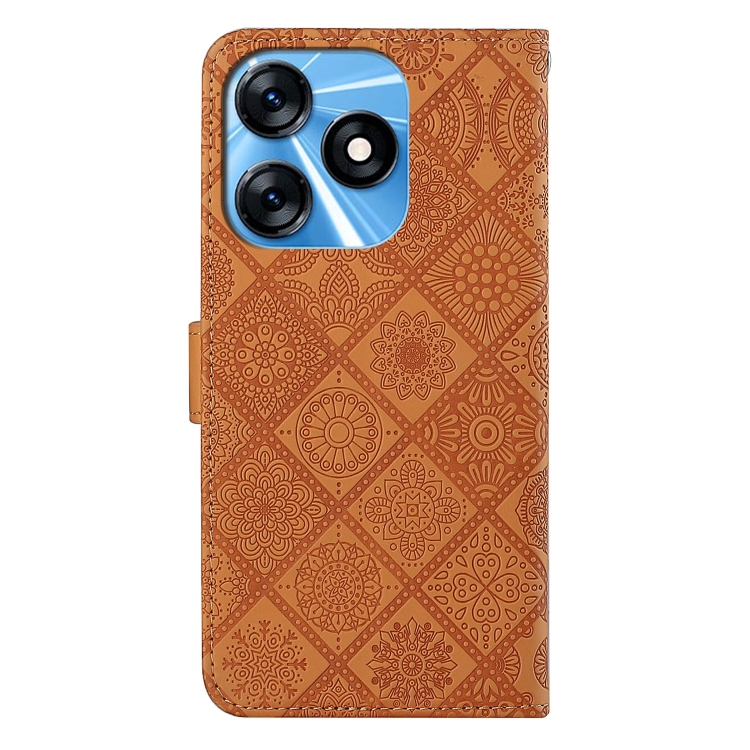 Funda de Cuero para Tecno Spark 10 y Spark 10C con Patrón Étnico en Relieve (Marrón)