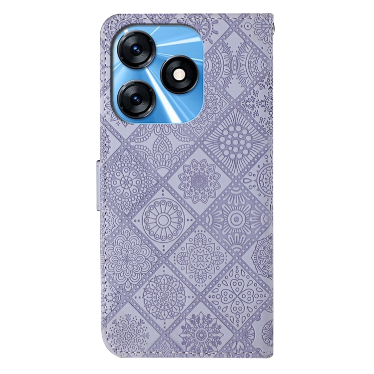 Funda de Cuero para Tecno Spark 10 y Spark 10C con Patrón Étnico en Relieve (Morado)