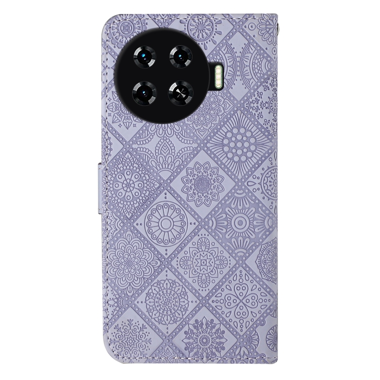 Funda de Cuero para Tecno Spark 20 Pro+ con Patrón En Relieve Estilo Étnico (Morado)