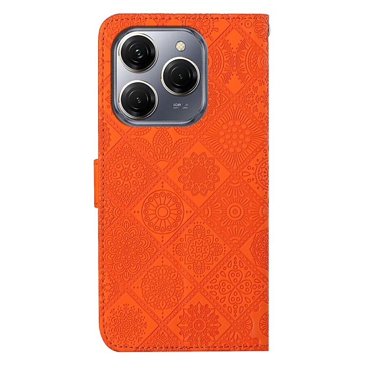 Funda de Cuero para Tecno Spark 20 Pro con Patrón En Relieve Étnico (Naranja)