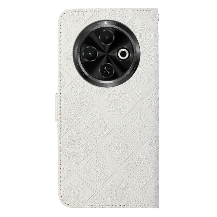 Funda de Cuero para Tecno Spark 30C con Patrón En Relieve Estilo Étnico (Blanco)