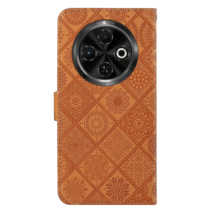 Funda de Cuero para Tecno Spark 30C con Patrón En Relieve Estilo Étnico (Marrón)