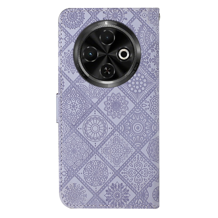 Funda de Cuero para Tecno Spark 30C con Patrón En Relieve Étnico (Morado)