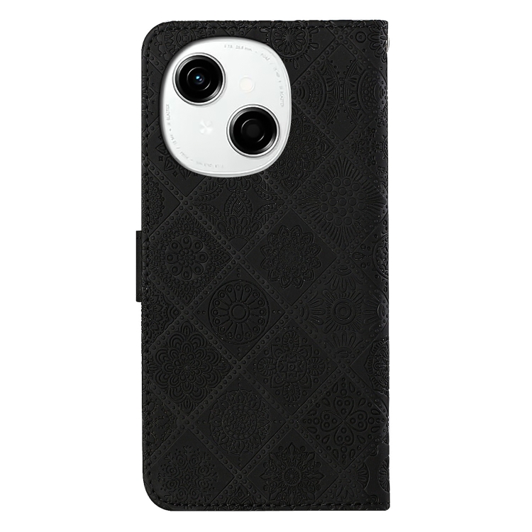 Funda de Cuero para Tecno Spark Go 1 con Patrón En Relieve Estilo Étnico (Negro)