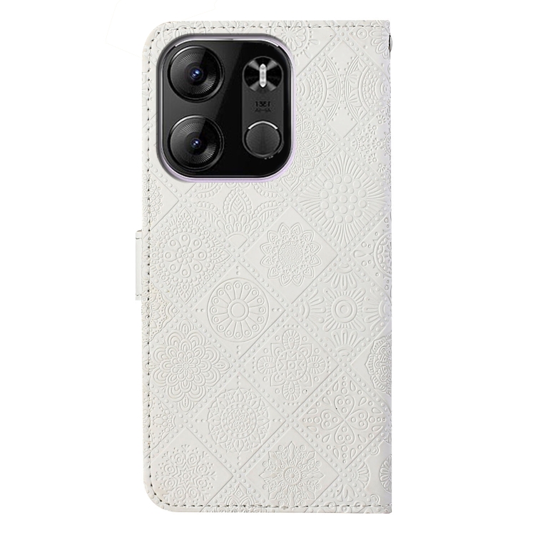 Funda de Cuero para Tecno Spark Go 2023 con Patrón en Relieve Étnico (Blanco)