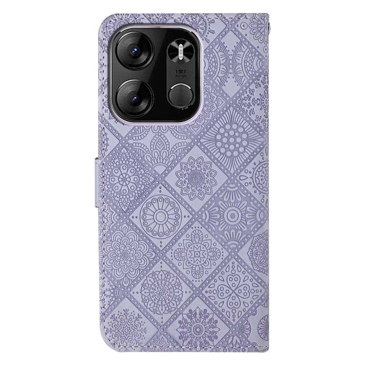 Funda de Cuero con Patrón en Relieve Estilo Étnico para Tecno Spark Go 2023 (Morado)