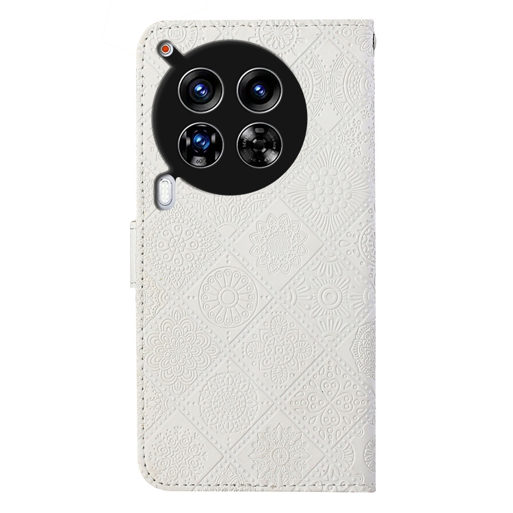Funda de Cuero para Tecno Camon 30 Premier con Patrón en Relieve Estilo Étnico (Blanco)