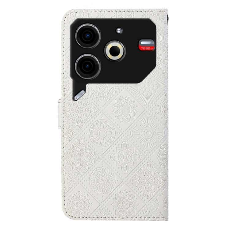 Funda de Cuero para Tecno Pova 6 Neo con Patrón en Relieve Estilo Étnico (Blanco)