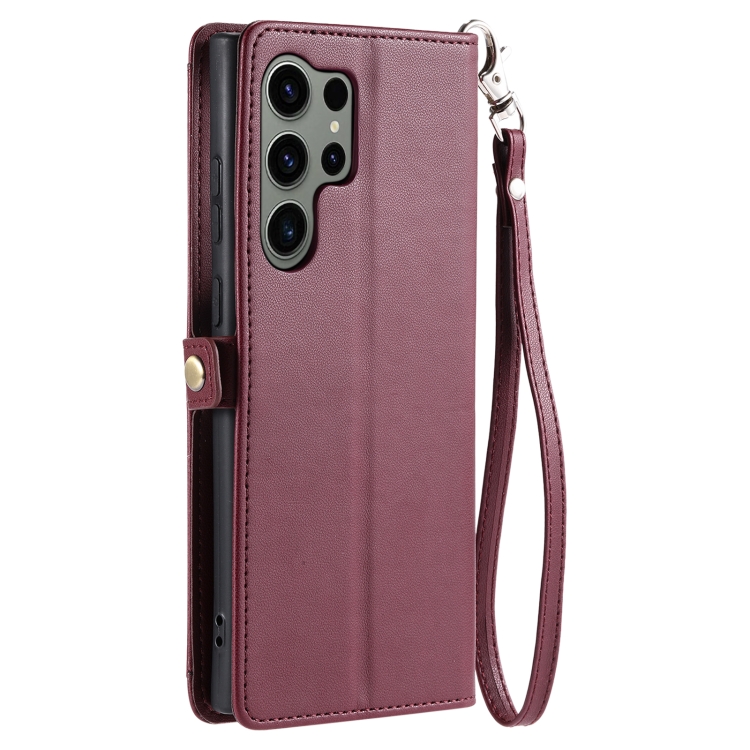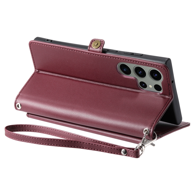Funda Cuero Samsung Galaxy S24 Ultra 5G Ranura Tarjetas Billetera (Rojo Vino)