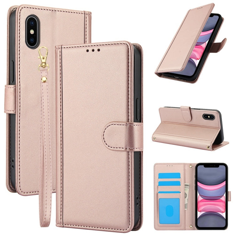 Funda de Cuero para iPhone Xs Max con Ranuras para Tarjetas y Cordón Doble (Oro Rosa)