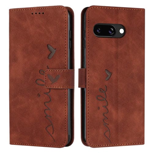 Funda de Cuero con Relieve de Corazón y Cordón Largo para Google Pixel 9A (Marrón)