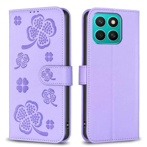 Funda de Cuero con Relieve de Cuatro Hojas para Honor X8C 4G (Morado)