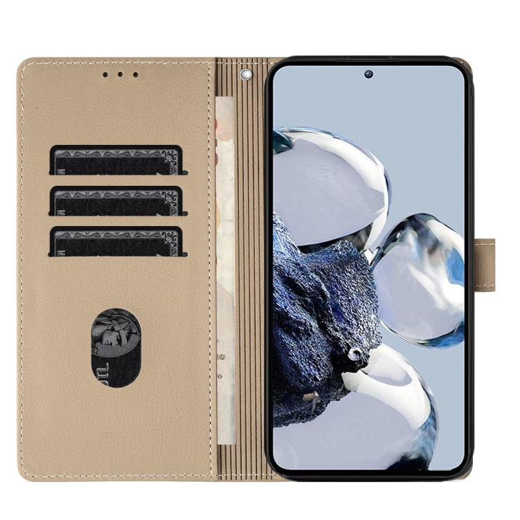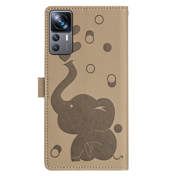 Funda de Cuero con Relieve de Elefante de Dibujos Animados para Xiaomi 12T/12T Pro (Caqui)