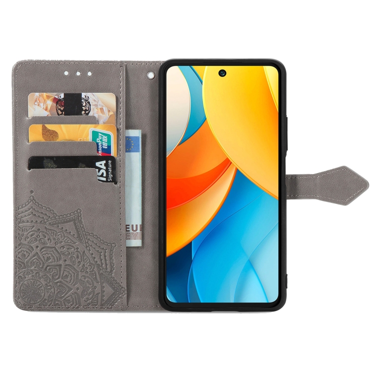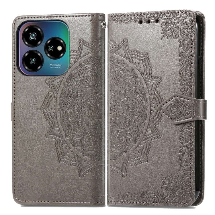Funda de Cuero con Relieve Mandala para ZTE Blade V60 Vita (Gris)