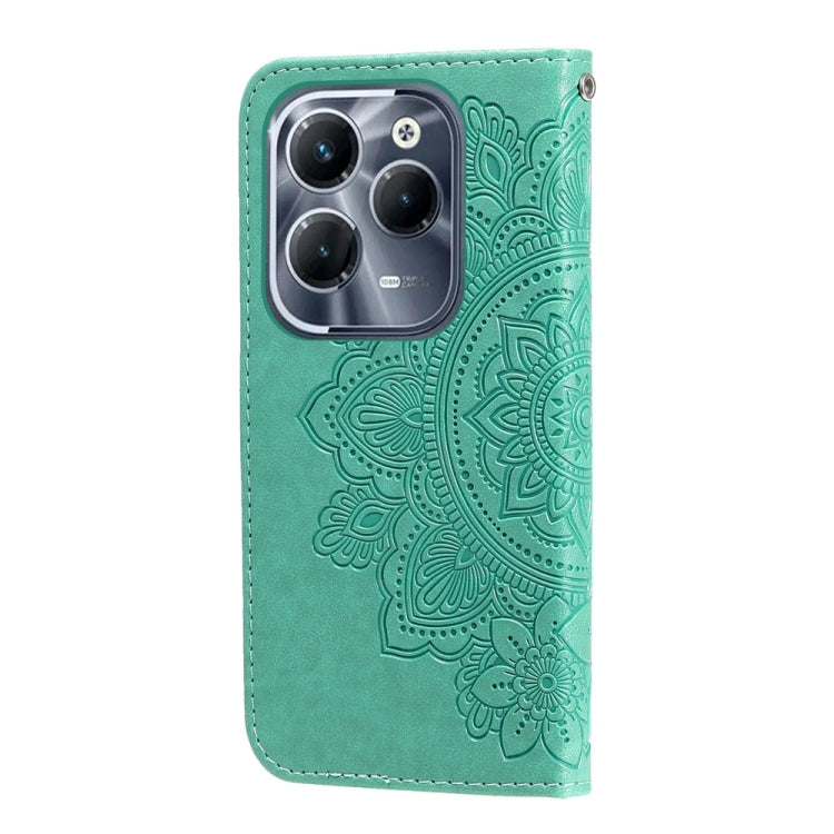 Funda de Cuero con Relieve de Flores de Siete Pétalos para Infinix Hot 40 y Hot 40 Pro (Verde)