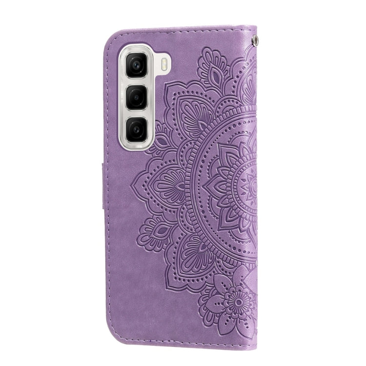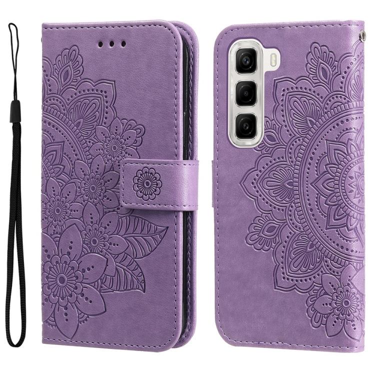 Funda de Cuero con Relieve de Flores de Siete Pétalos para Infinix Hot 50 4G (Morado Claro)