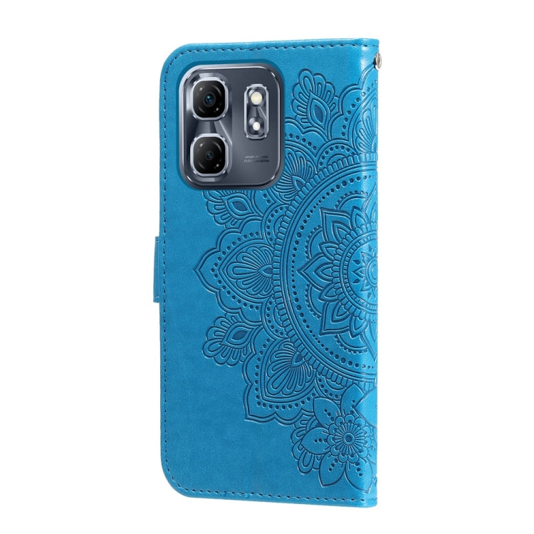 Funda de Cuero con Relieve Flores Siete Pétalos para Infinix Hot 50I Smart 9 (Azul)