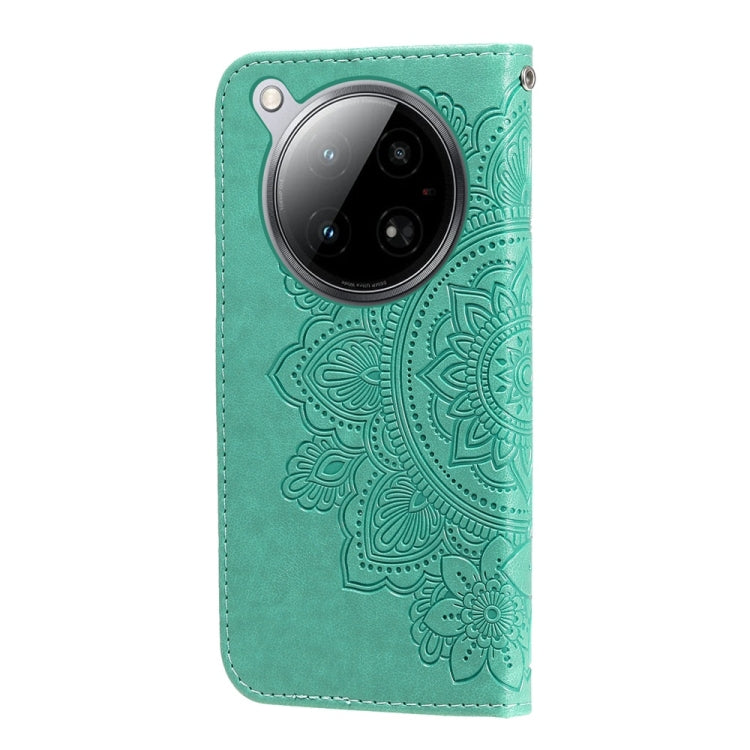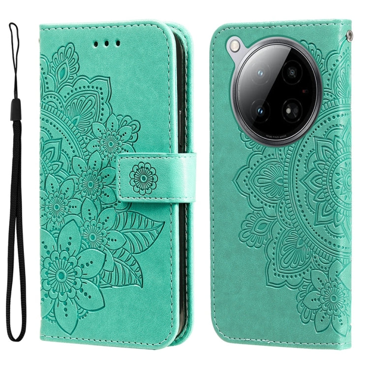Funda de Cuero con Relieve de Flores Siete Pétalos para Infinix Zero 40 4G/5G (Verde)