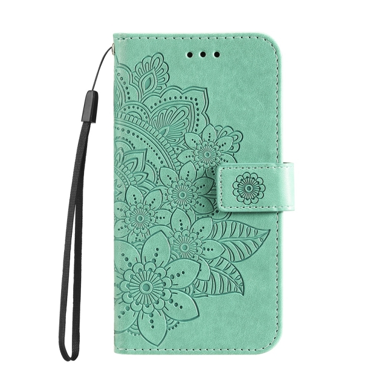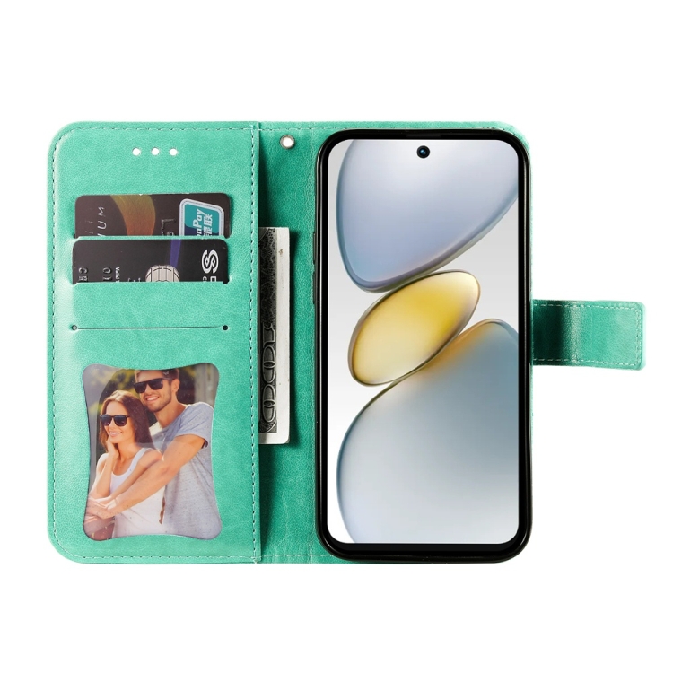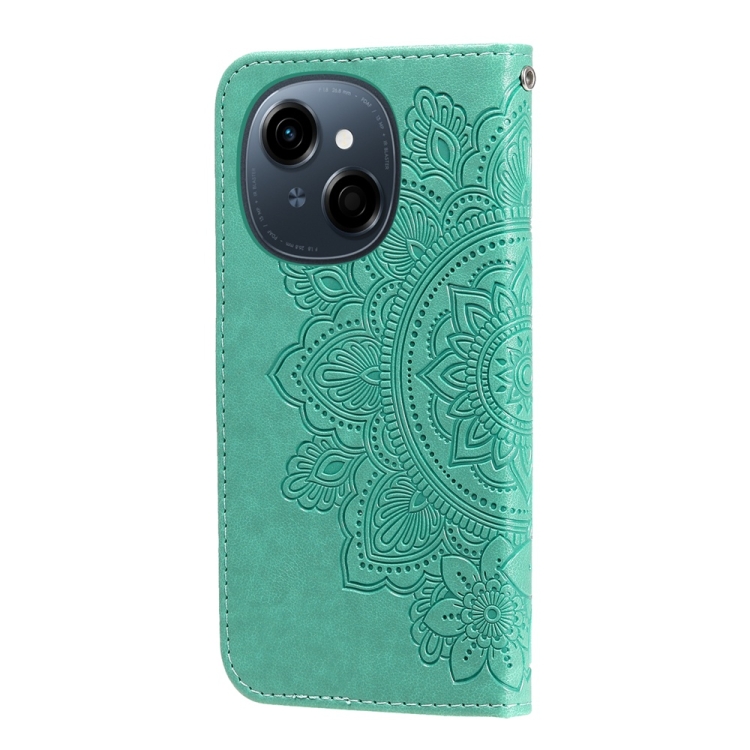 Funda de Cuero con Relieve de Flores de Siete Pétalos para Tecno Spark Go 1 / Pop 9 / Spark Go 2025 (Verde)