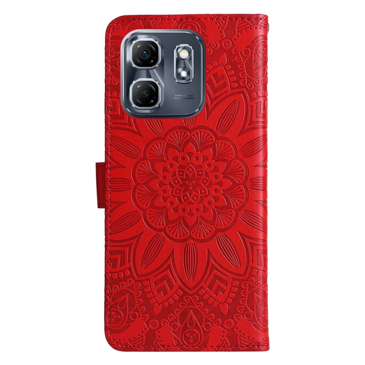 Funda de Cuero con Relieve de Girasol para Infinix Hot 50I Smart 9 (Rojo)