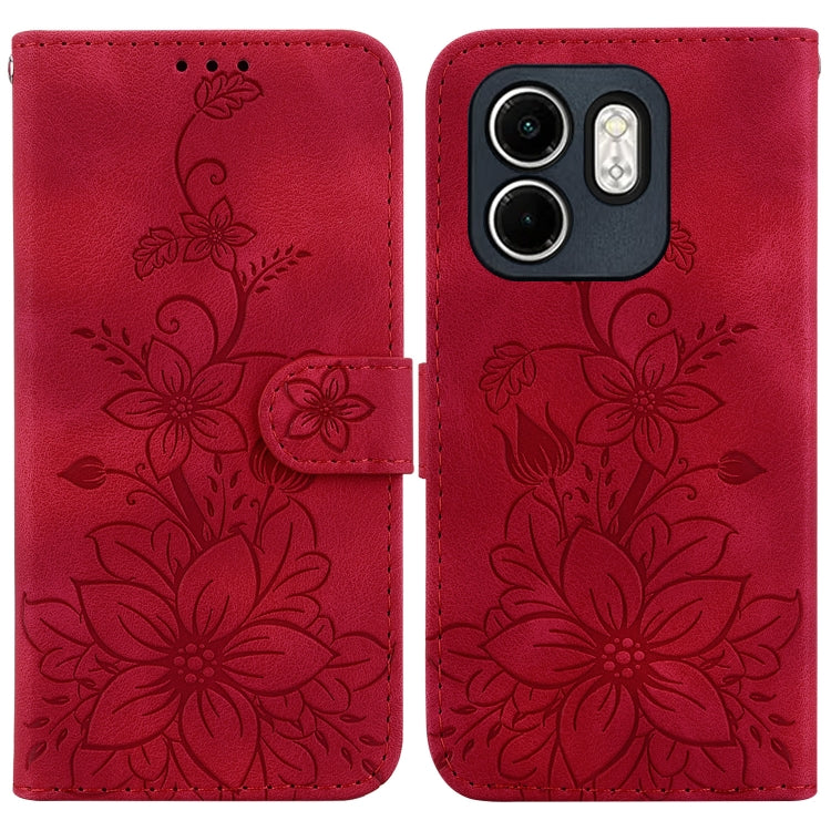 Funda de Cuero con Relieve de Lirio para Infinix Hot 50I Smart 9 (Roja)