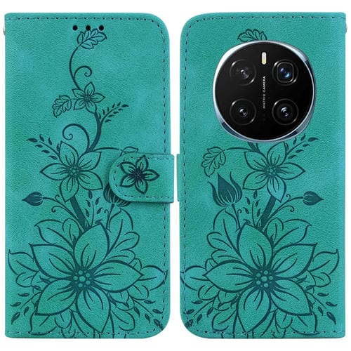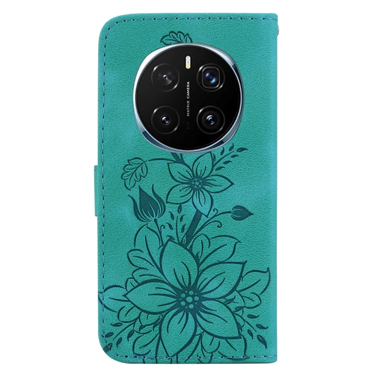 Funda de Cuero con Relieve de Lirio para Honor Magic7 Pro (Verde)