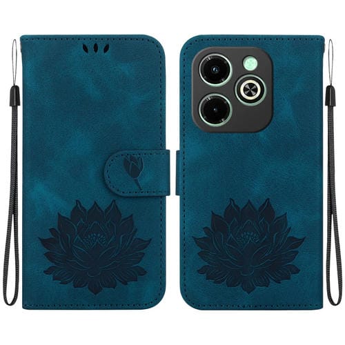 Funda de Cuero con Relieve de Loto para Teléfono Infinix Hot 40I (Azul Oscuro)