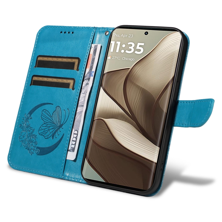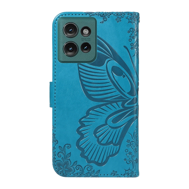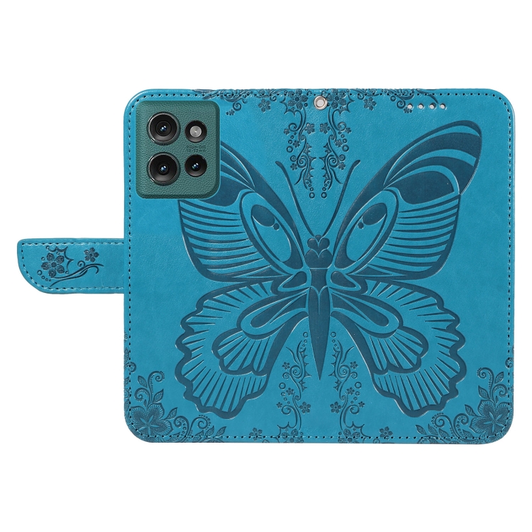 Funda de Cuero con Relieve de Mariposa para Motorola Edge 50 5G (Azul)