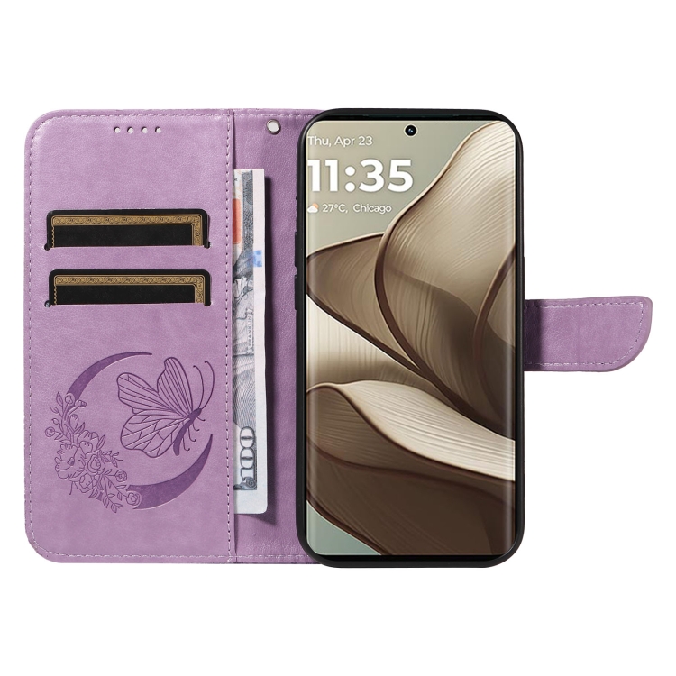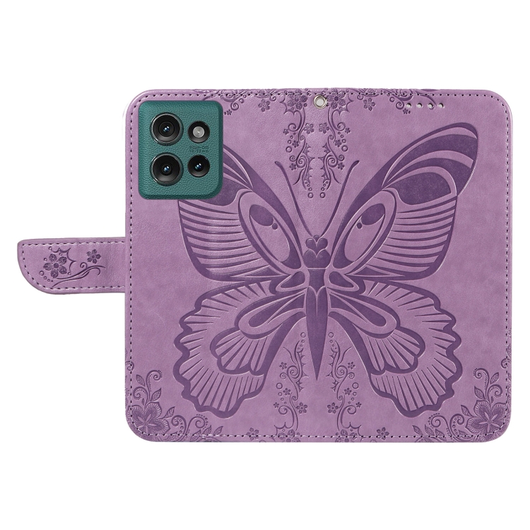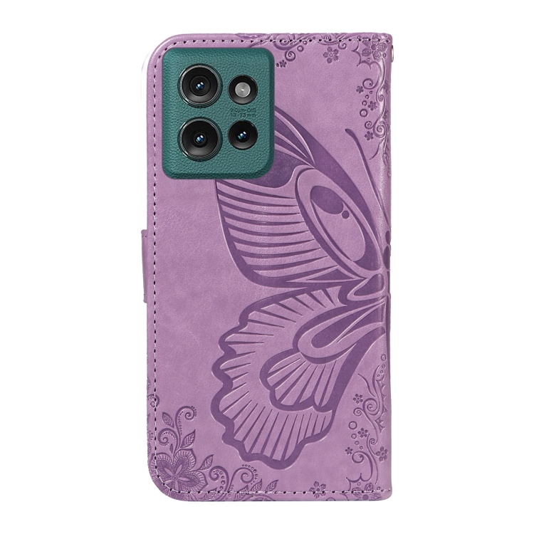 Funda de Cuero con Relieve de Mariposa para Motorola Edge 50 5G (Morado)