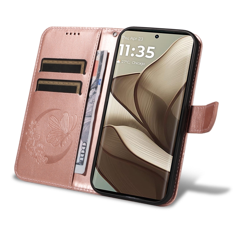 Funda de Cuero con Relieve de Mariposa para Motorola Edge 50 5G (Oro Rosa)