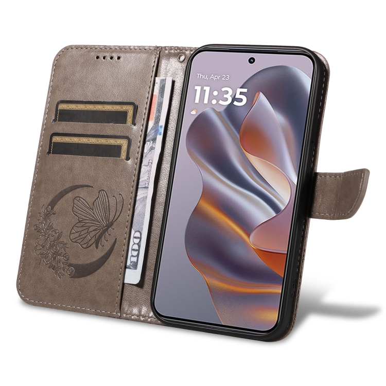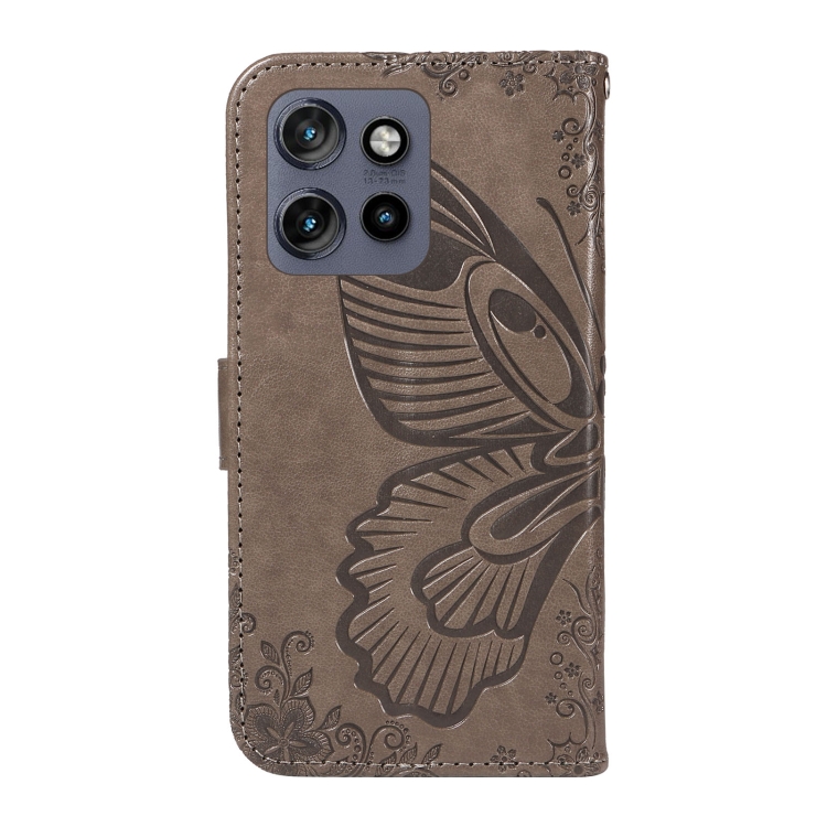 Funda de Cuero con Relieve de Mariposa para Motorola Edge 50 Neo (Gris)