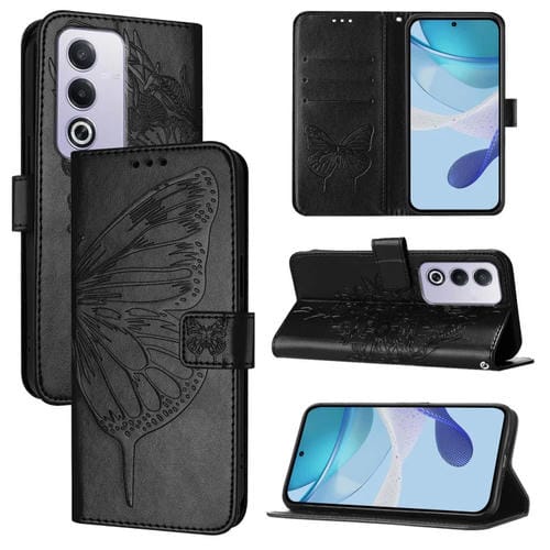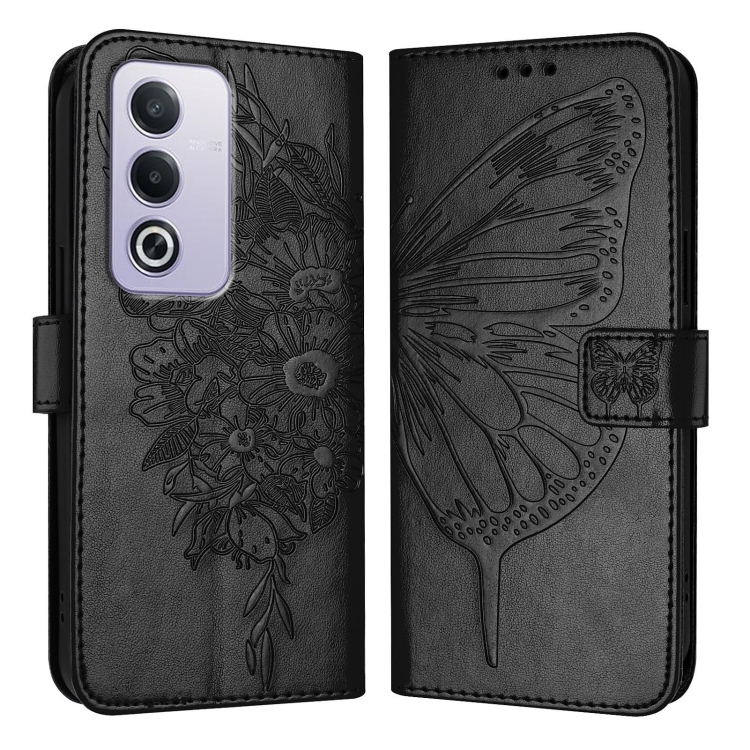 Funda de Cuero con Relieve de Mariposa para Teléfono Oppo A3 Pro 5G (Negra)