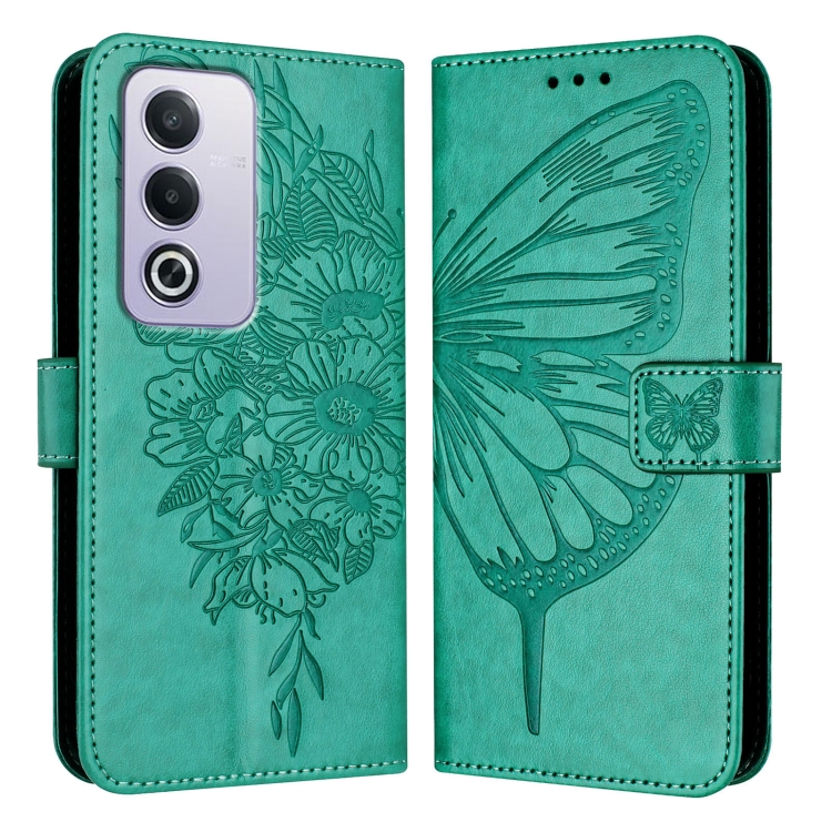 Funda de Cuero con Relieve de Mariposa para Teléfono Oppo A3 Pro 5G (Verde)